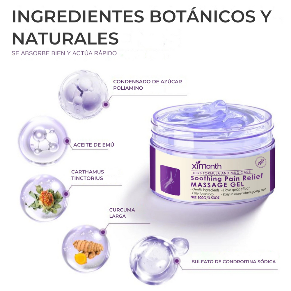 Dile adiós a las molestias con nuestro Gel de Masaje Calmante para el Alivio del Dolor, elaborado con ingredientes botánicos naturales