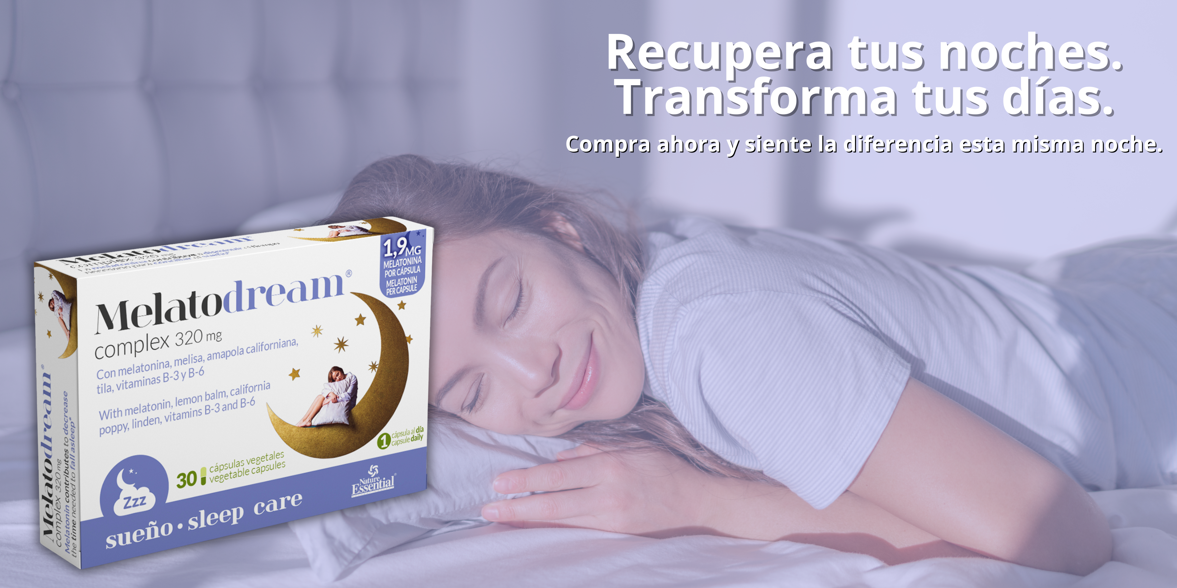 Con melatonina, melisa, amapola californiana, tila, vitaminas B-3 y B-6