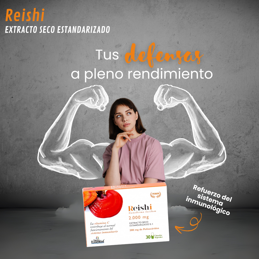 Este suplemento de Reishi es un potente adaptógeno que ayuda al cuerpo a adaptarse al estrés físico y mental. Su uso está indicado para fortalecer las defensas del organismo y aumentar la vitalidad, siendo conocido como el "hongo de la eterna juventud".